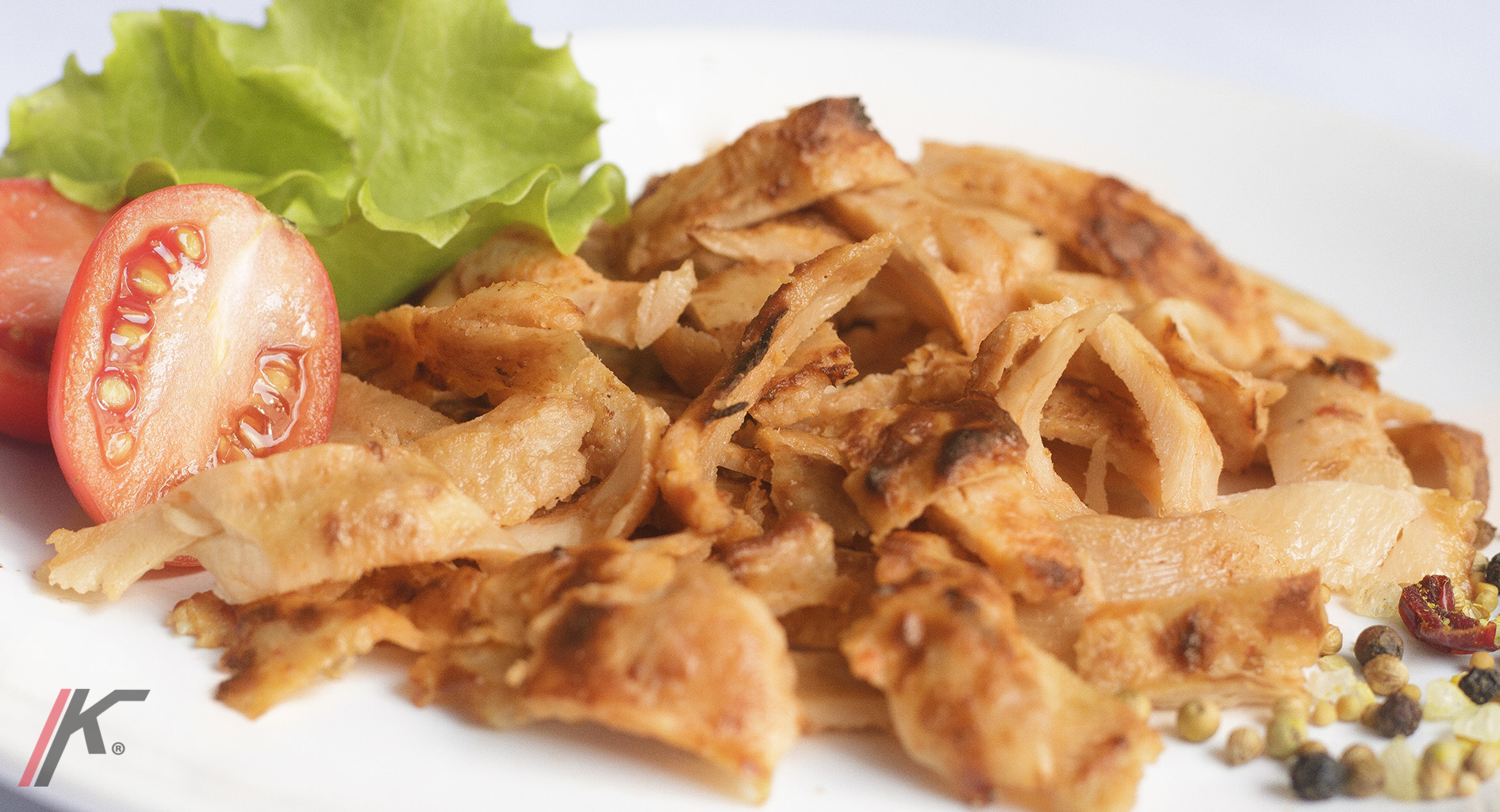 Clásico kebap de pollo asado en lonchas, 5 ª gama.