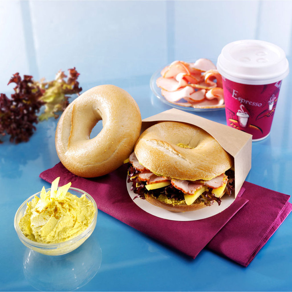 Sandwich precortado con forma circular con un agujero en el medio, se puede acompañar con salado o dulce. 11x 3,5 cm 75 g, 36 ud