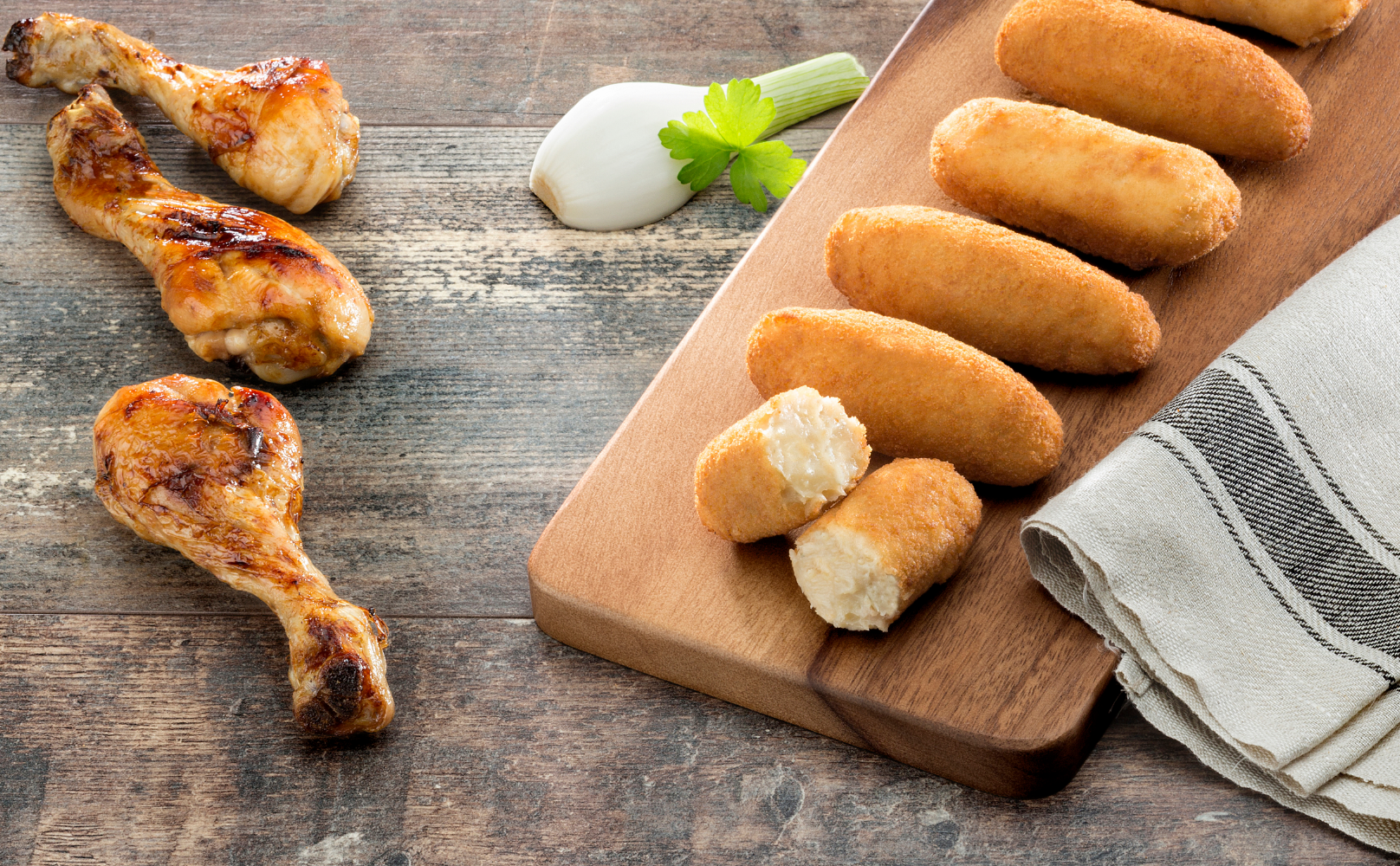 Tradicionales croquetas elaboradas a base de muslo, contramuslo y pechuga de pollo.