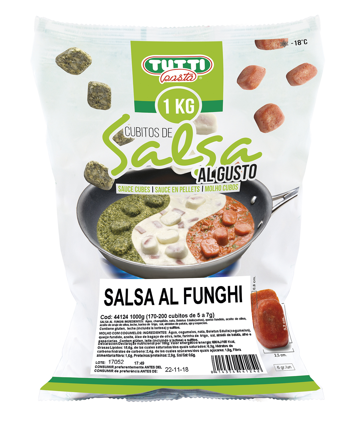 Salsa tradicional italiana, a base de setas y queso. En forma de cubitos.