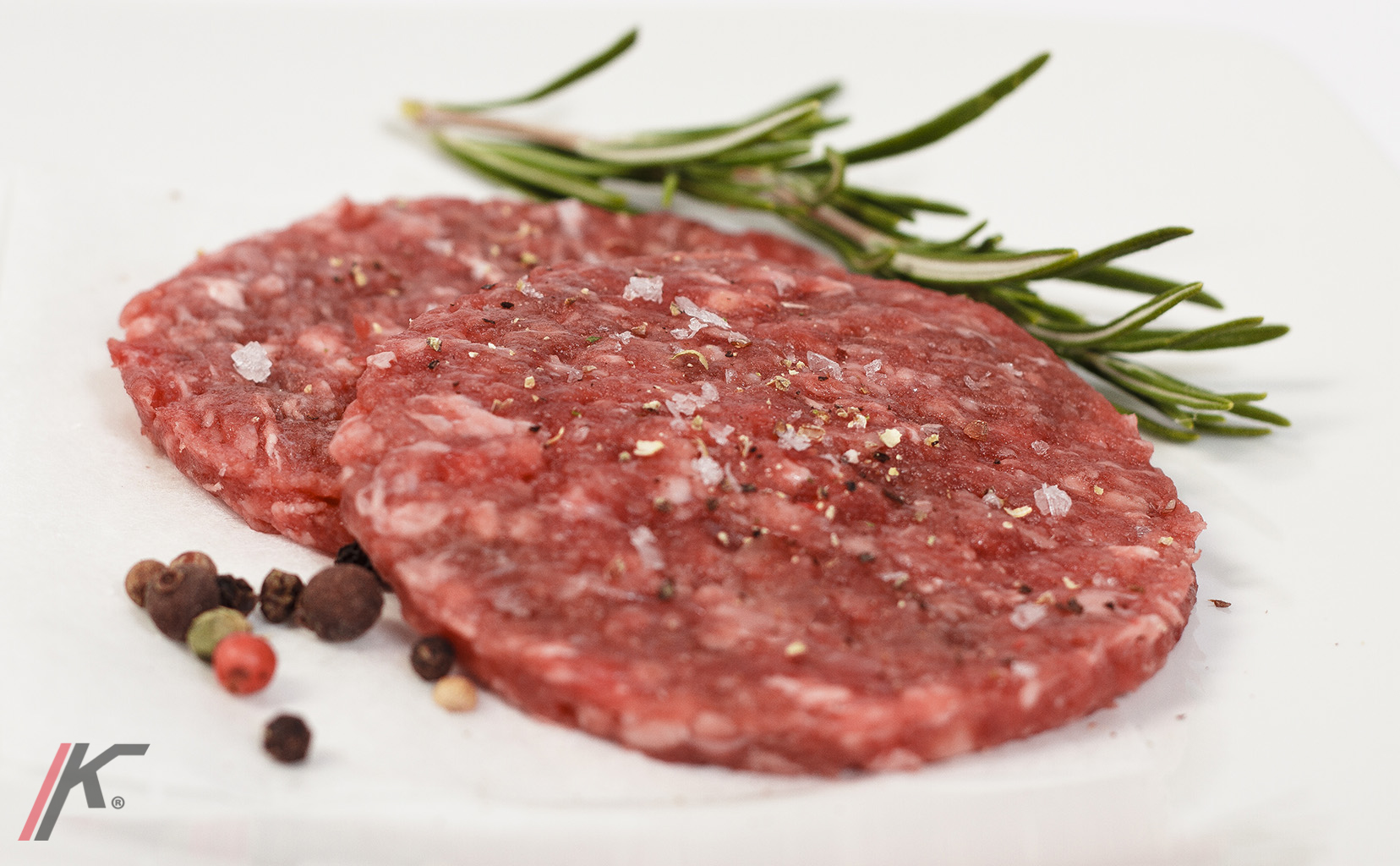 Hamburguesa de 45 gramos de piezas selectas de vacuno 100%, “PURE BEEF”, procedente de materia prima nacional”