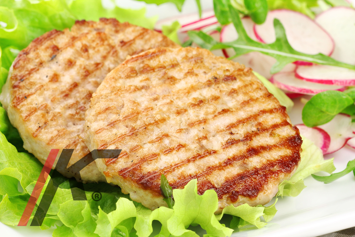 Hamburguesa de pollo 110 g con más aditivos y sin rebozo.