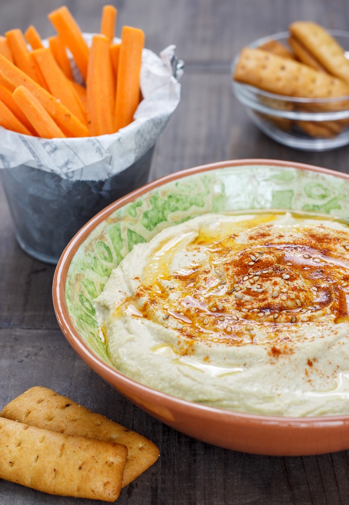 Tradicional crema de garbanzos, limón y tahini. Formato grande.