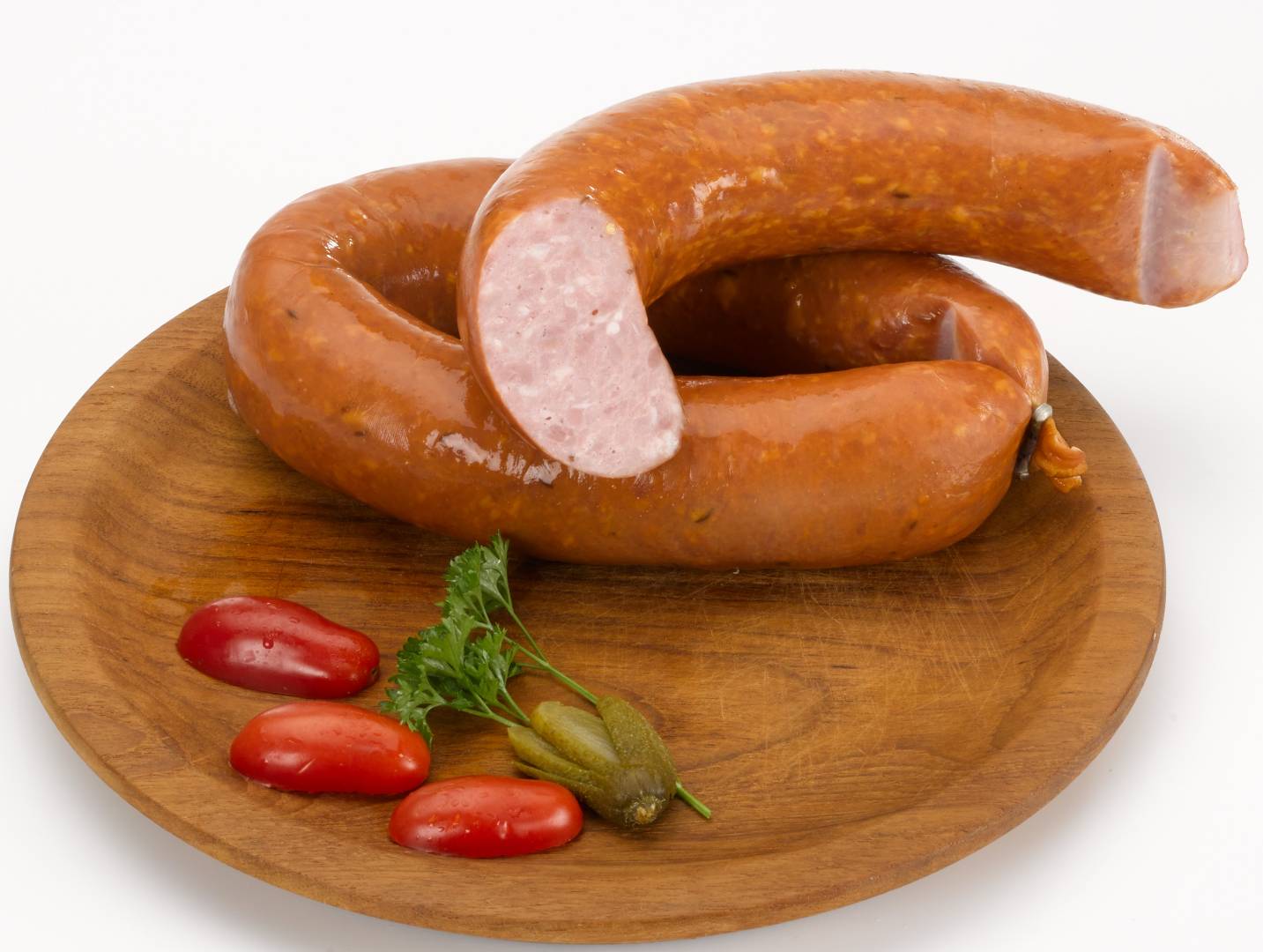 Embutido tradicional alemán de cerdo con forma de «u», contiene tropezones de carne dentro.