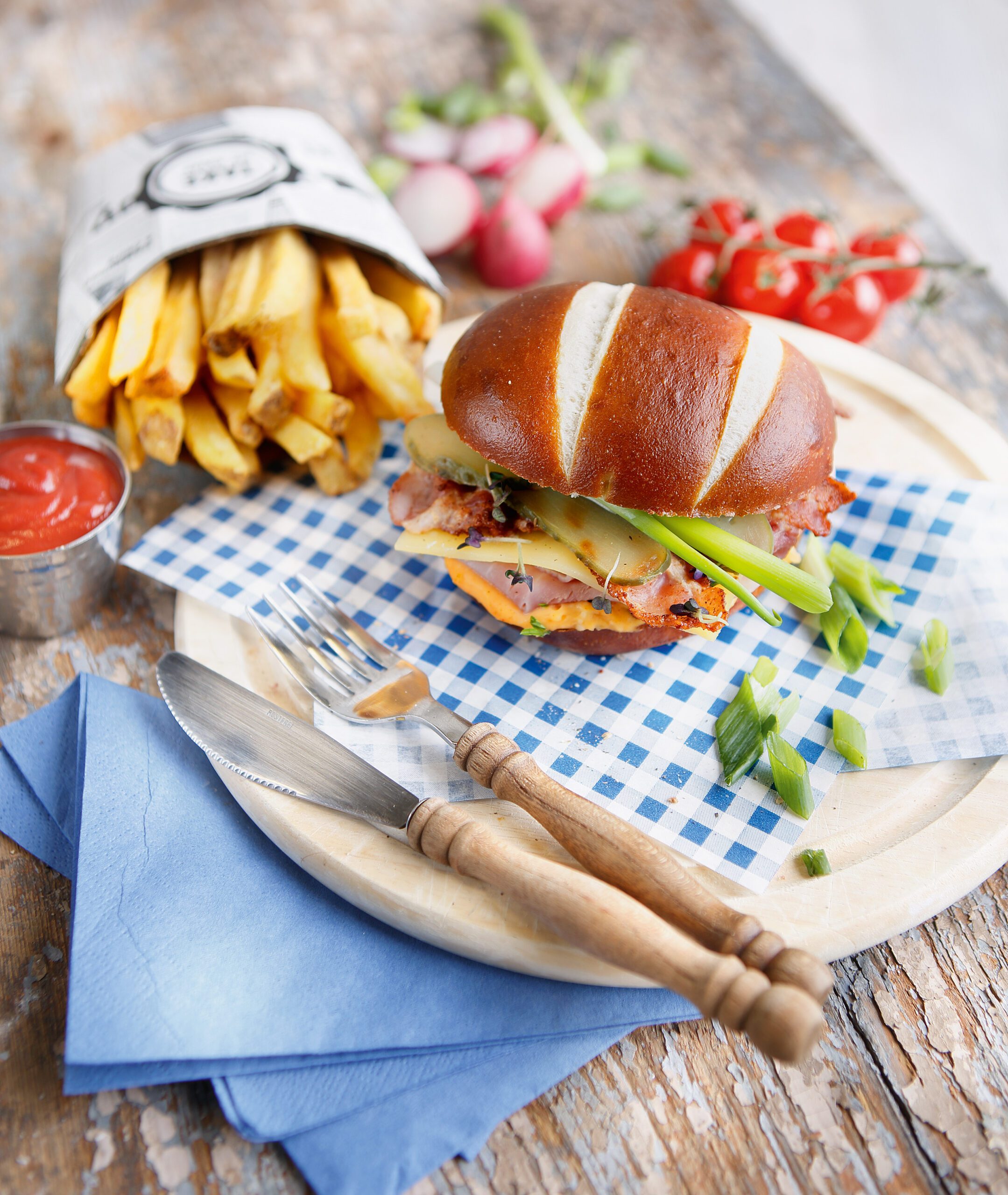 El delicioso Brezel tradicional alemán en forma de pan de hamburguesa