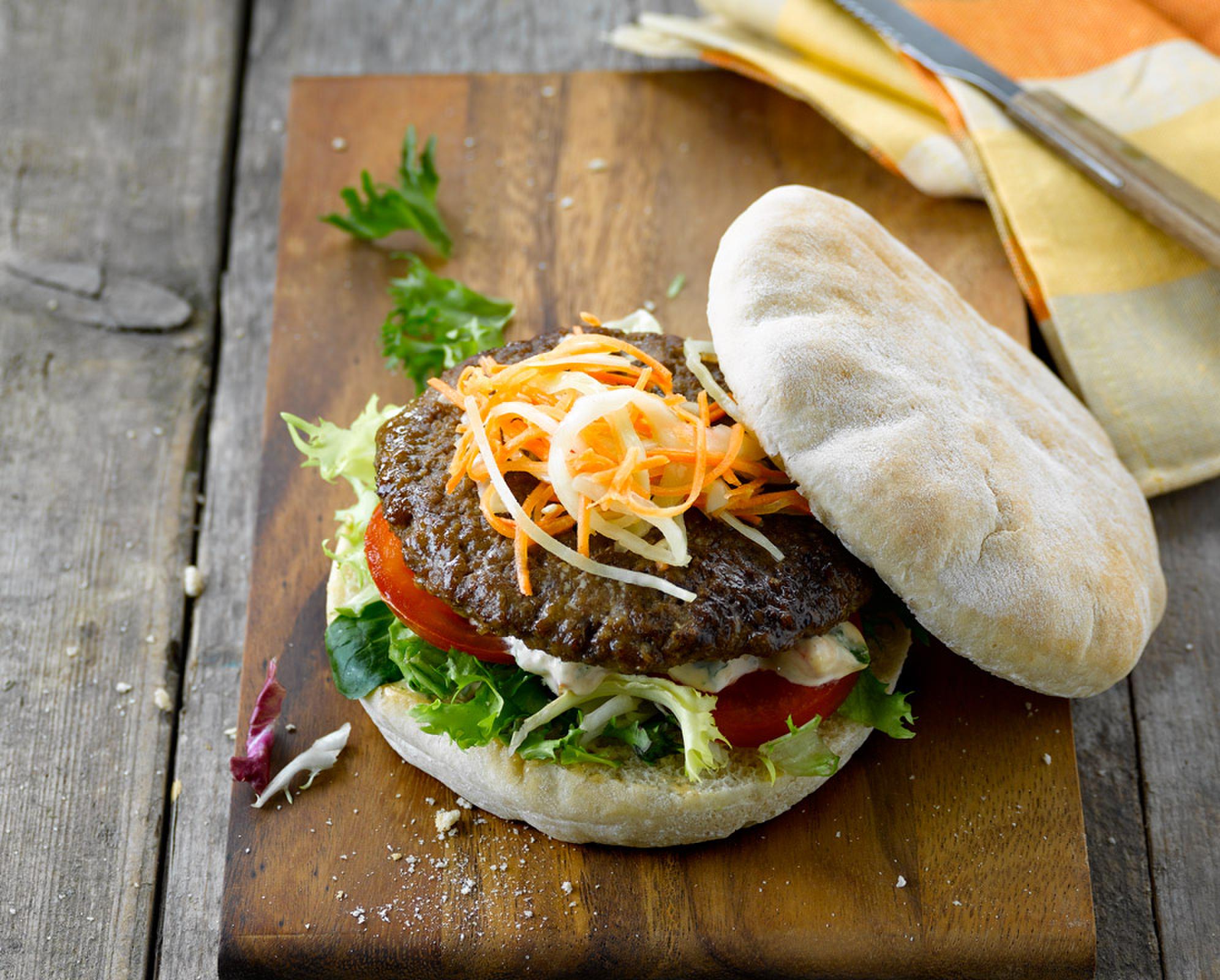 Pan de hamburguesa estilo rrústico, descongelar y consumir.