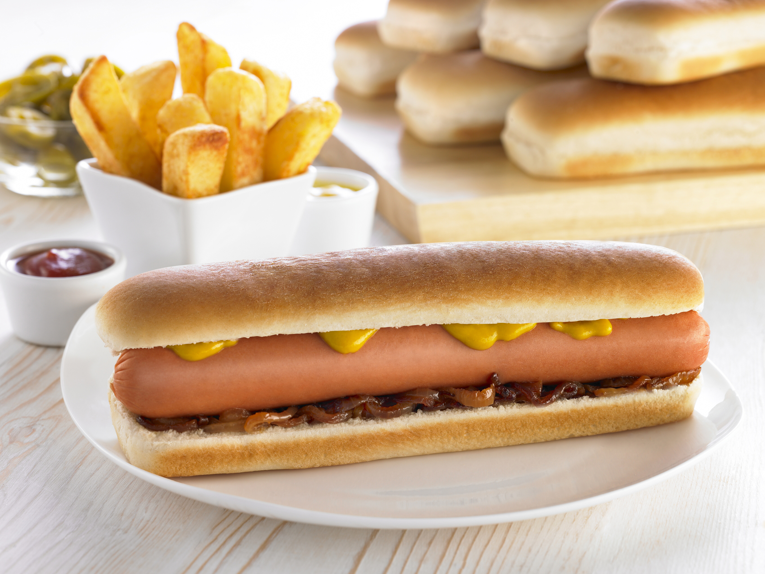 Pan para Hot dog, con 21 cm de longitud y precortado lateralmente.