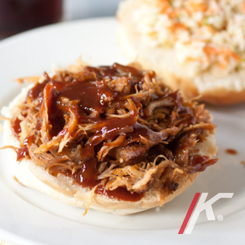 Carne de cerdo asada a baja temperatura y deshilachada con salsa BBQ.