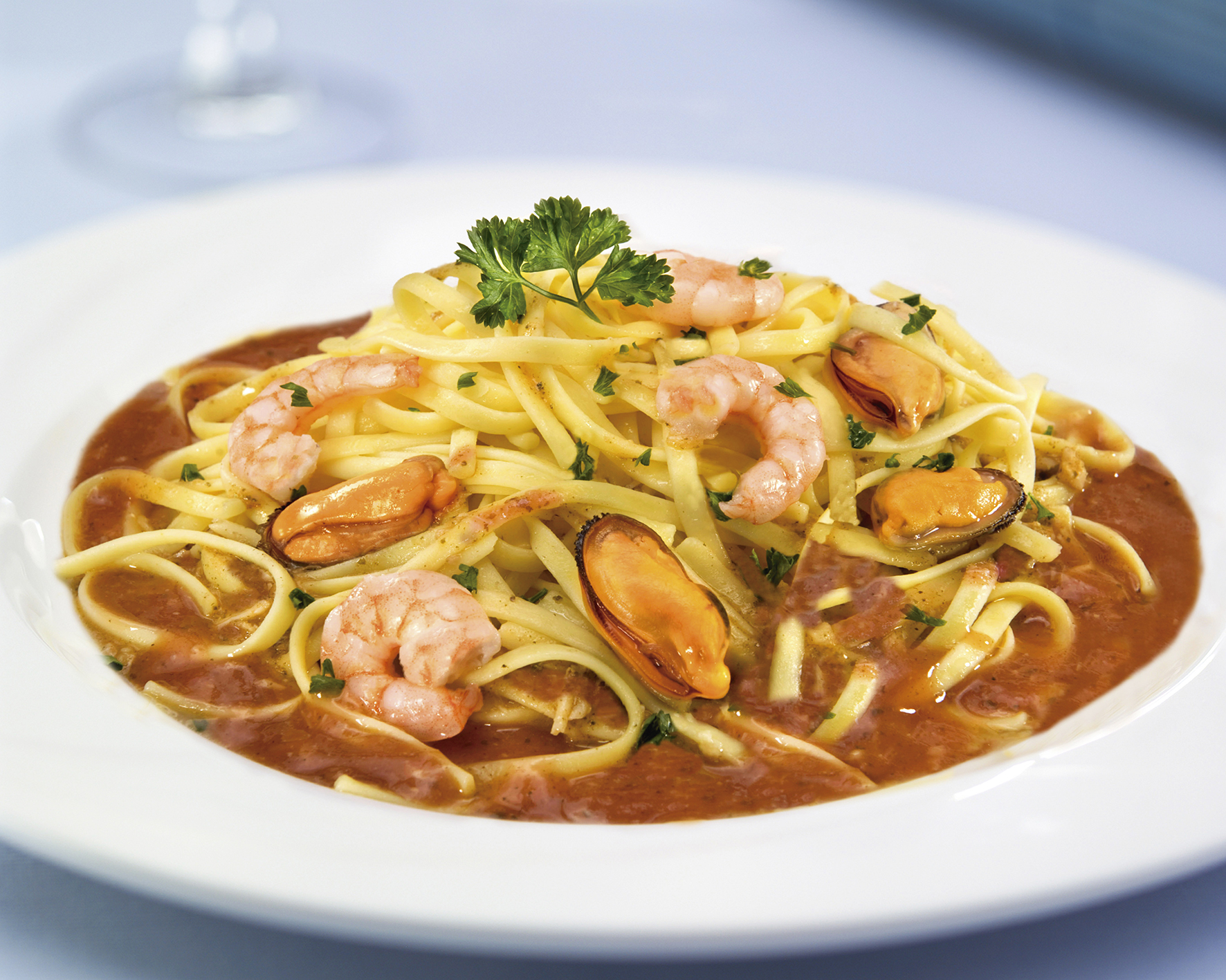 Sabrosa salsa marinera a base de gamba, mejillón, calamar y merluza, cocinada con sofrito de verduras y aceite de oliva»